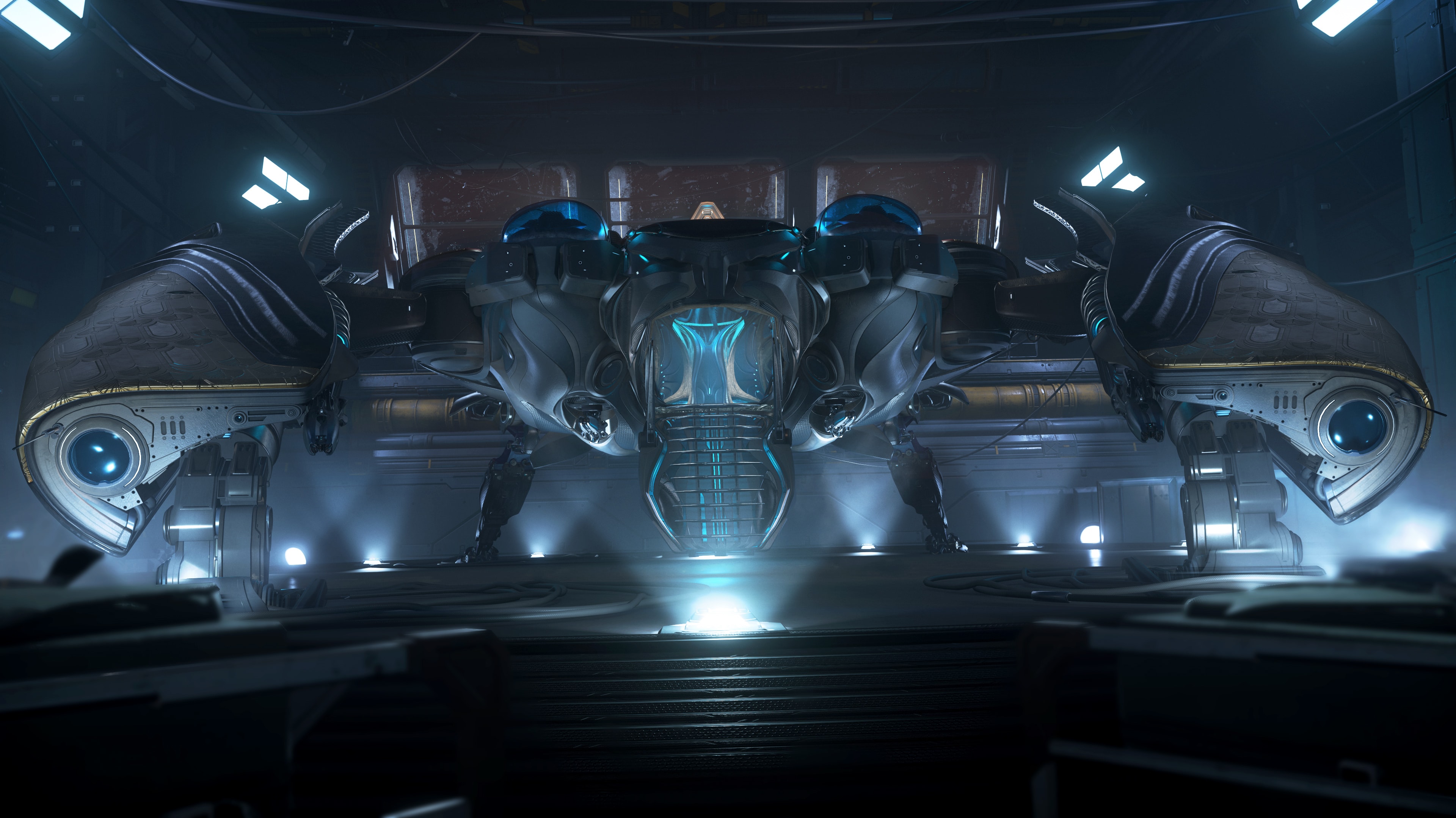 Meet the Banu Defender, a multi-crew fighter whose patchwork design highlights technology from a variety of species. Featuring modest accommodations for its crew and easy access to components, the Defender gets its name from the role it serves: the first line of defense against enemy attacks. That's why the Defender makes the ideal companion to the Merchantman: one to do the heavy hauling and the other to perform the deadly dogfighting.