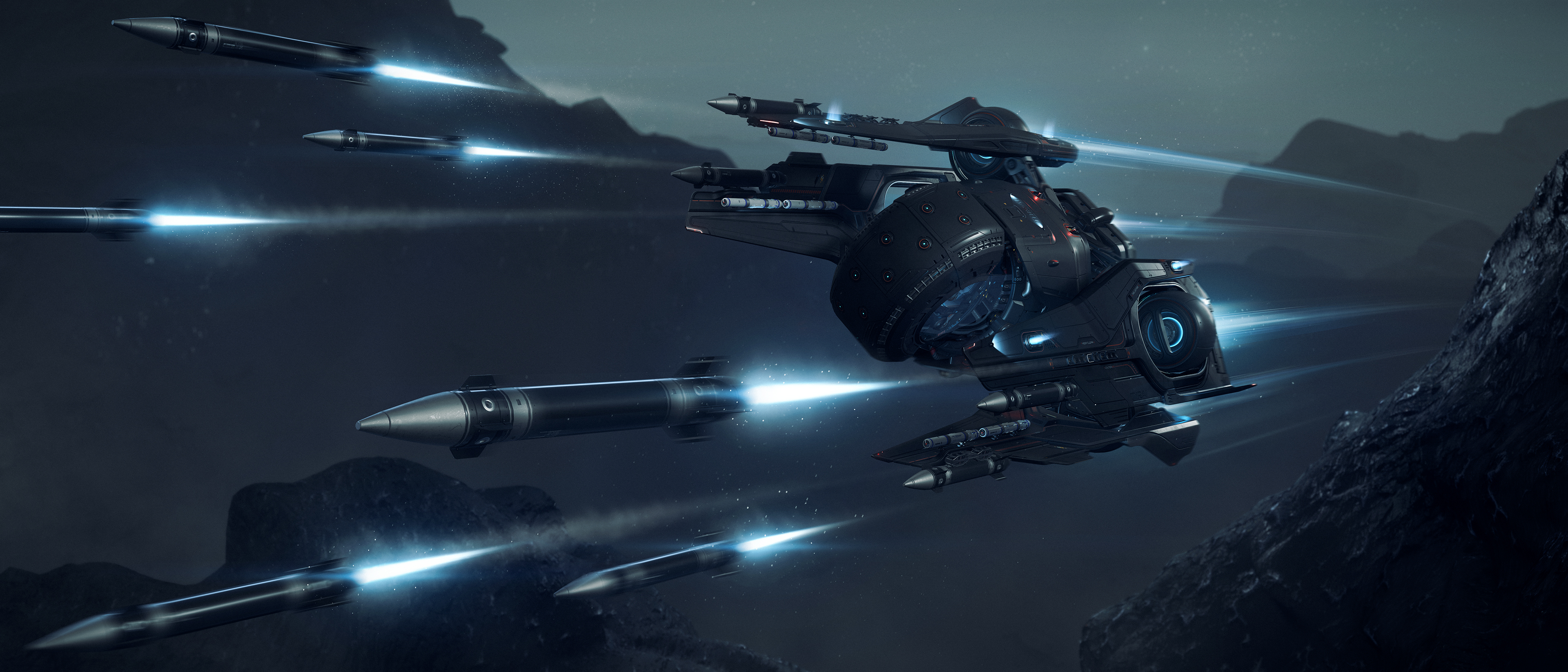 Featuring best-in-class maneuverability and fully integrated, cutting-edge Xi’an tech, the next-generation Fury MX snub bomber from Mirai uses its twenty halo-mounted missiles to devastate targets during short-range space combat.