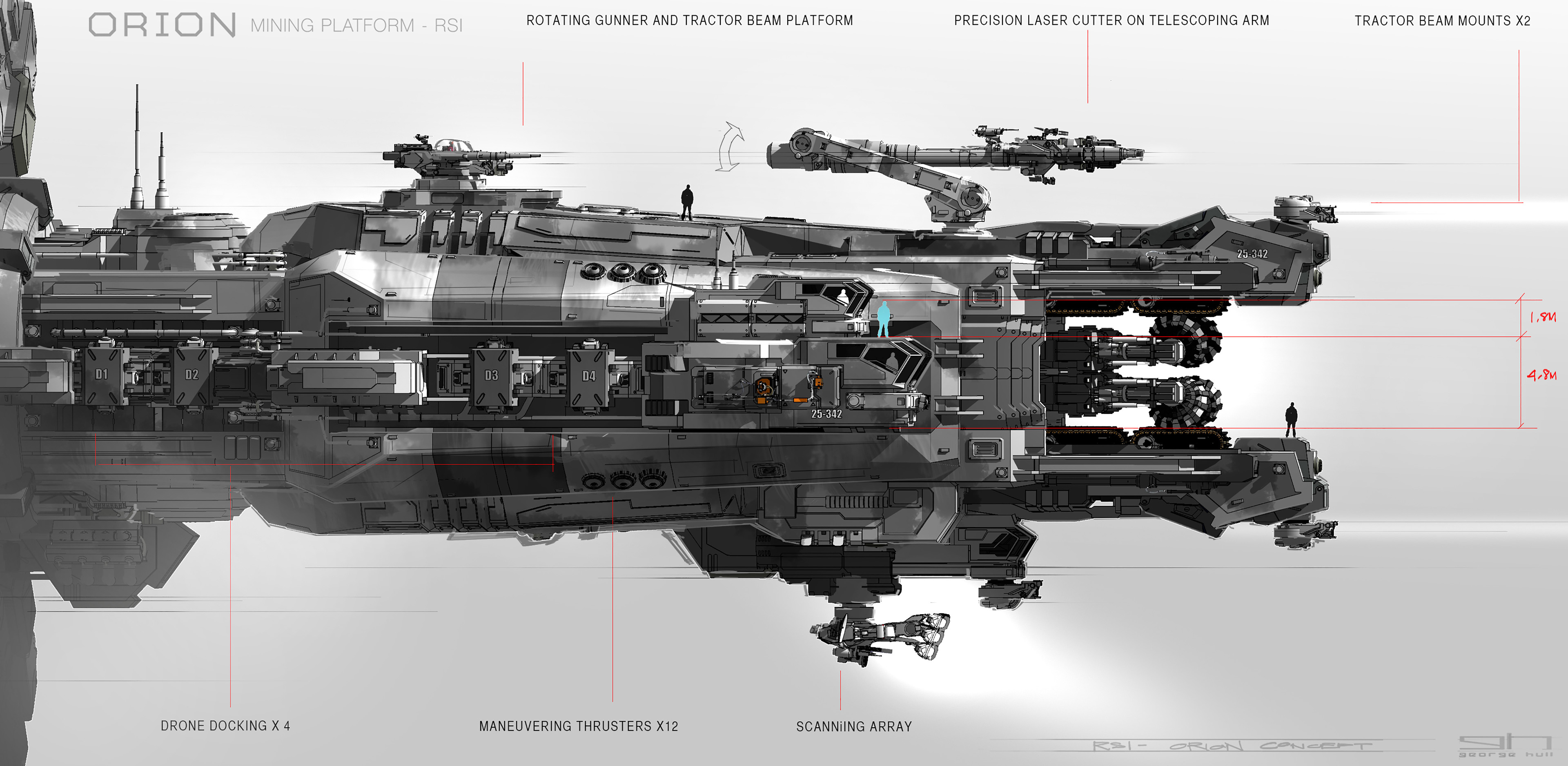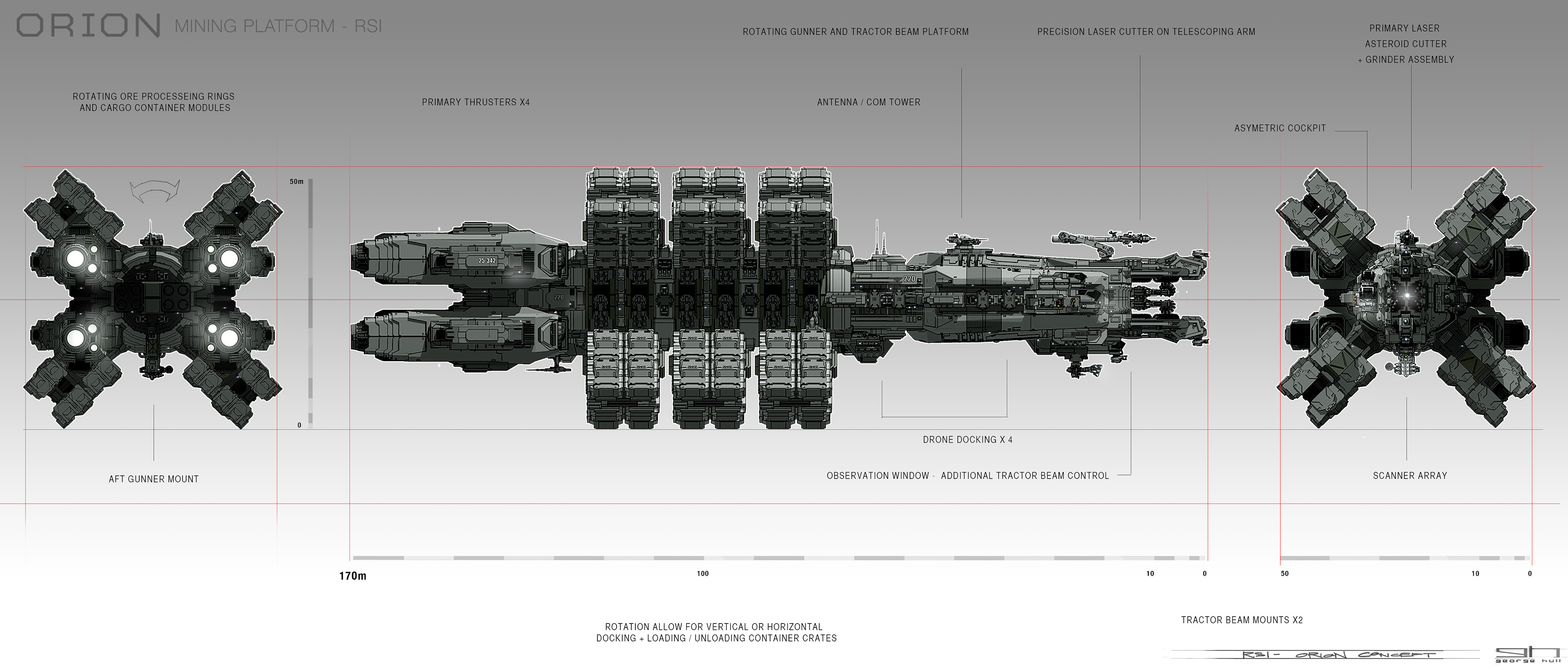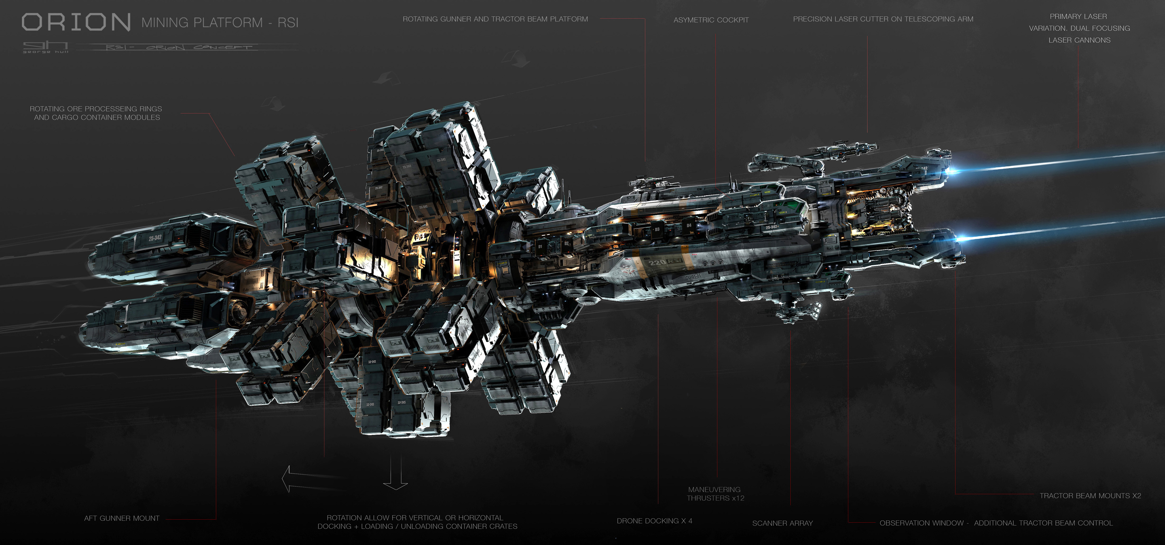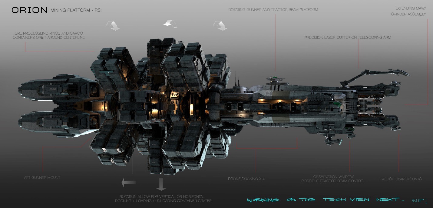 Roberts Space Industries’ goal has always been to make the stars available to individual Citizens. Now, with the RSI Orion mining platform, RSI is letting individuals take over a process formerly controlled by mega-corporations. The Orion’s features include high-grade turret-mounted tractor beam arrays, plenty of mineral storage and a cabin designed by the team that brought you the Aurora and Constellation!