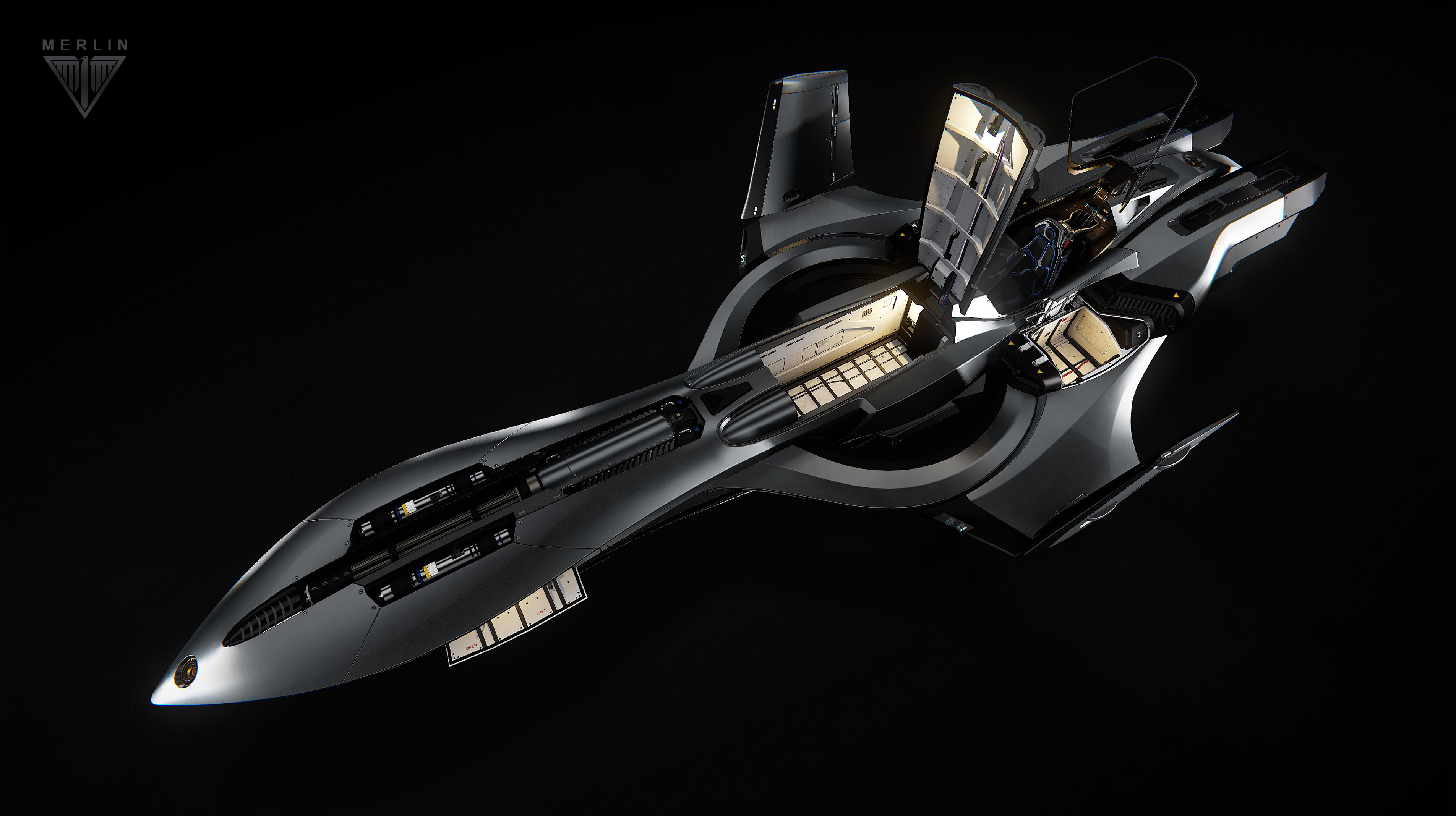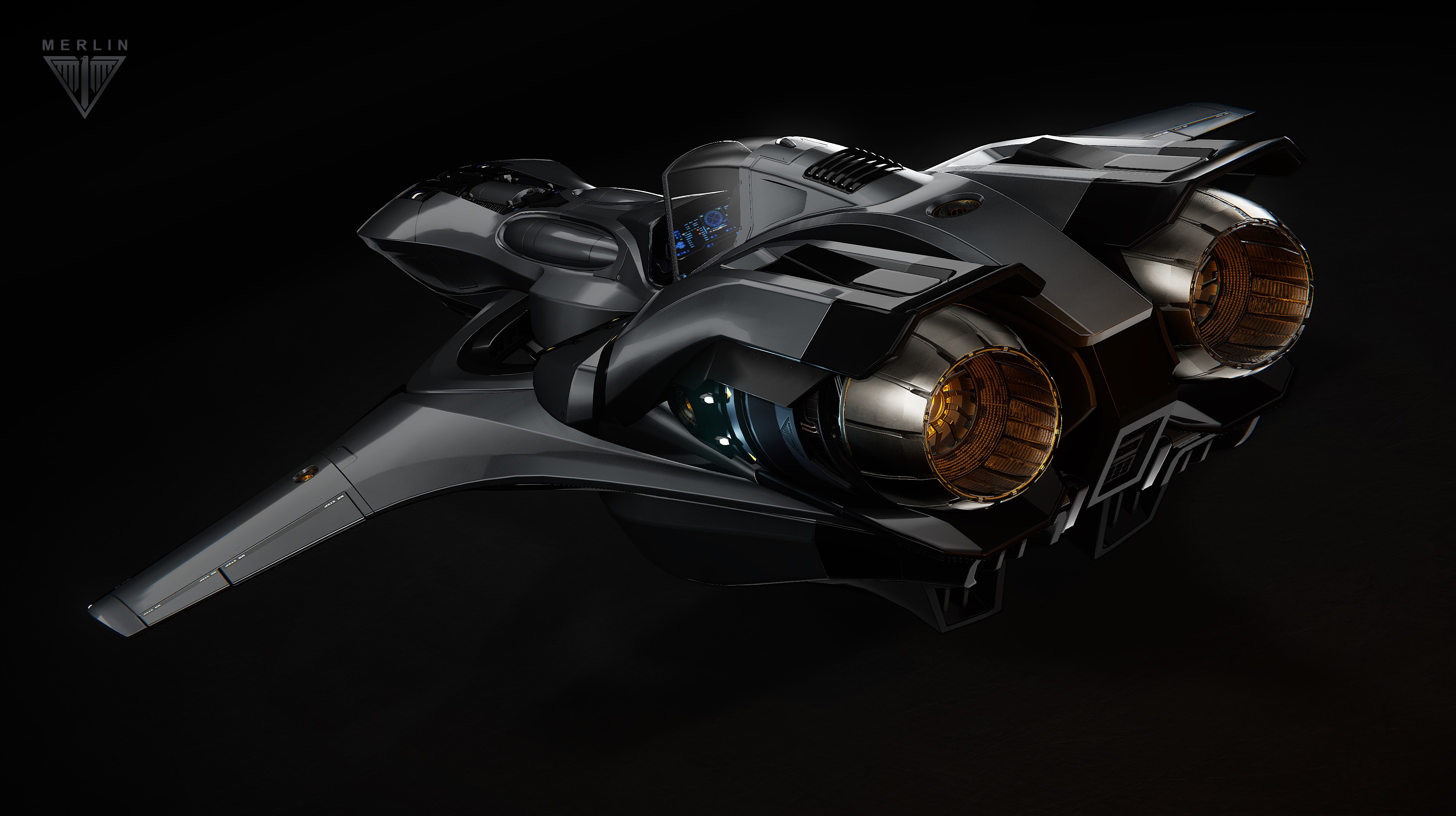 Designed in conjunction with RSI, this elegant short-range snub fighter represents the first ship produced under the Kruger Intergalactic brand. Utilizing centuries of manufacturing expertise, the compact precision of the Kruger hull blends perfectly with the trusted RSI thrusters to grant the Merlin exceptional handling and maneuverability while ensuring that it is capable of fulfilling a variety of roles from combat to scouting to scanning.