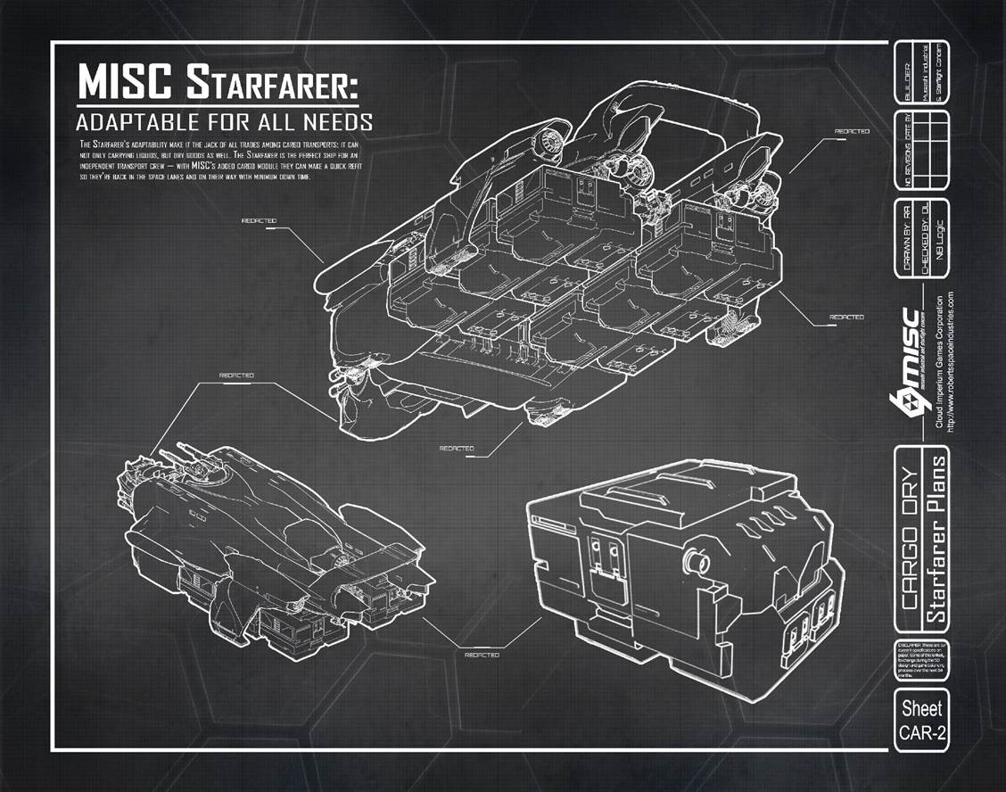 The Starfarer differs from traditional bulk freighters in one key way: it is a dedicated fuel platform. The Starfarer is designed not only to load, store and protect fuel stasis units, it is designed to take in spaceborne gases and refine them for use without landing. And while it excels at this, the Starfarer can also be used to ferry traditional bulk cargo pods.